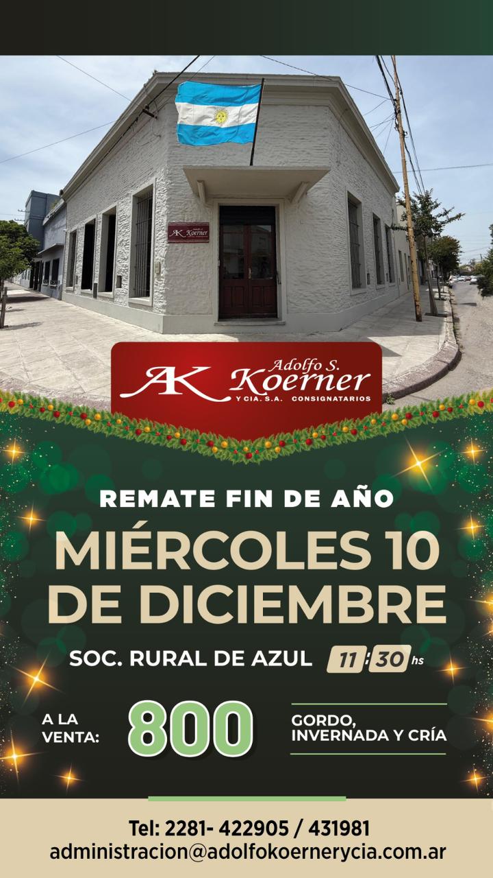 El miércoles 3 de diciembre la feria de la Sociedad Rural de Azul será sede