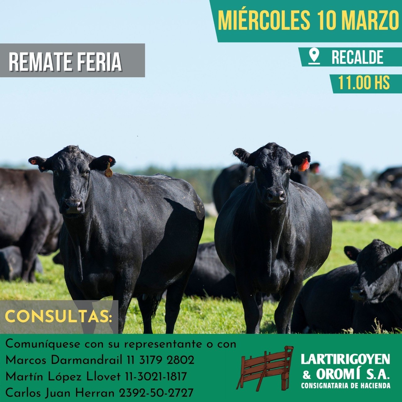 El Remate se llevara a cabo desde las 11:00 hs. en las instalaciones con que cuenta la firma en la localidad de Recalde, Partido de Olavarría con haciendas generales de Gordo Invernada y cría. Para más información contactarse con Guillermo Sorsoli en sus oficinas de 9 de Julio 2771 ó a los teléfonos 02284 416841, 02284 15687005 / 7008 / 7009. Sólo con la presencia de compradores autorizados, sin almuerzo y siguiendo el protocolo establecido para la comercialización de hacienda en remates feria. Más información del remate aquí