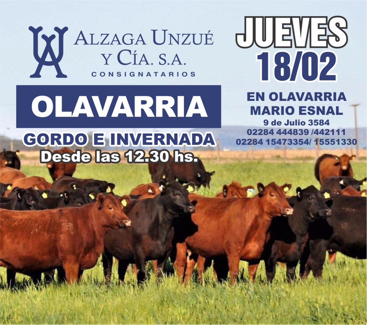 La firma, representada por Mario Esnal en Olavarría, anuncia 700 vacunos de gordo, invernada y cría para este jueves desde las 12,30 horas en instalaciones de la Sociedad Rural