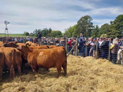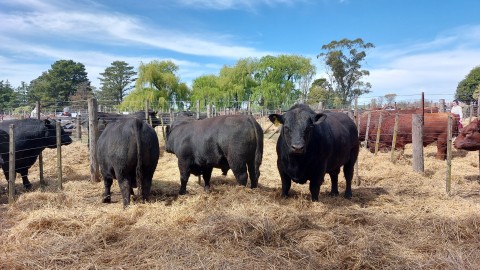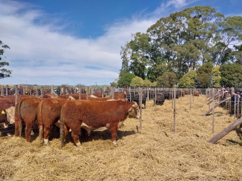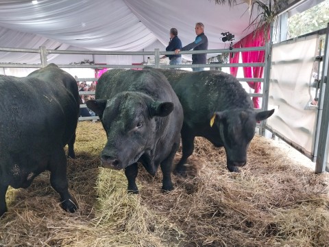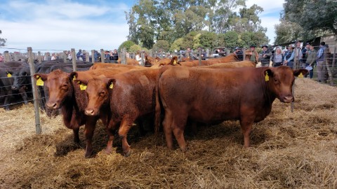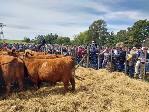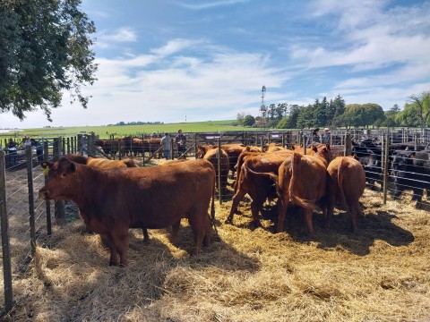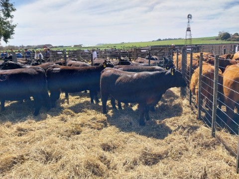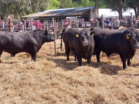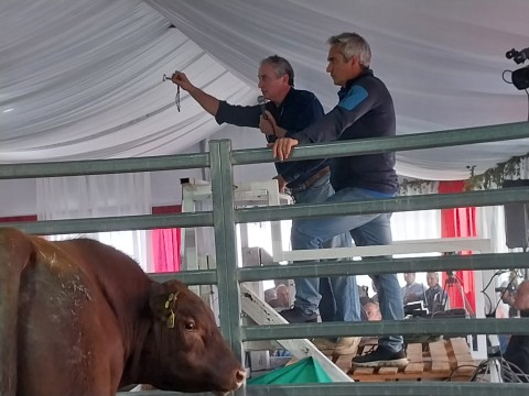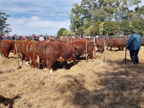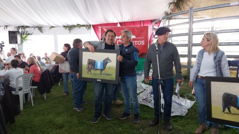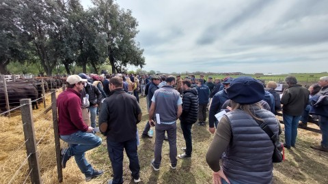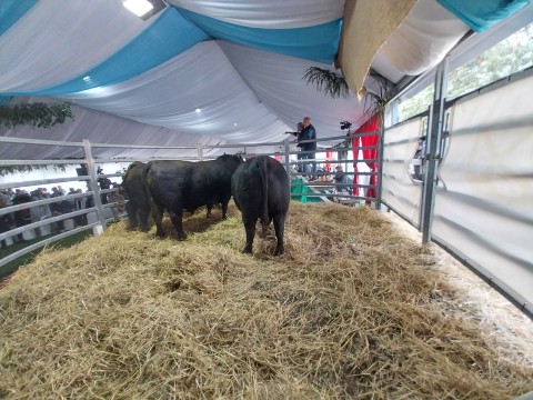 250 vaquillonas angus negras y coloradas (PC y MAS), y 120 toros PP y PC angus negro, colorado y polled hereford PR y S/. fueron saliendo sin problemas ante las muchas manos interesadas con las que contó Juan Wallace desde el martillo para redondear un gran remate también desde los negocios que repasamos a continuación