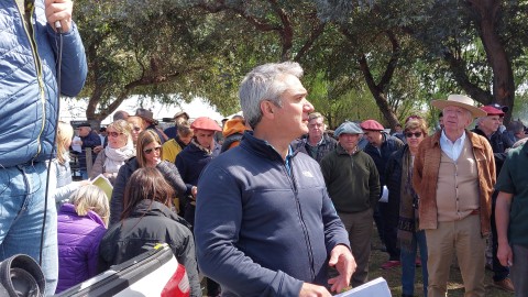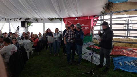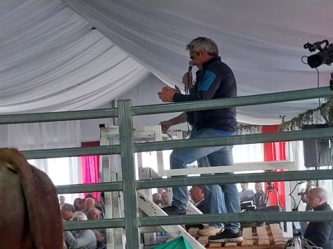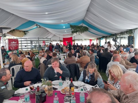 Gustavo Pouyanne, el gran responsable de la espléndida jornada ganadera vivida hoy a la vera de la ruta 226, lamentaba después del remate el haberse quedado cortos de mesas dentro de la carpa. es que la convocatoria sorprendió a propios y extraños y casi 500 personas desbordaron las siempre bien presentadas instalaciones de la cabaña ubicada a mitad de camino entre Azul y Tandil. Un éxito de público, que una vez más se deslumbró con la sólida calidad, que de punta a punta, mostró la fila presentada tanto en Hereford como en Angus.