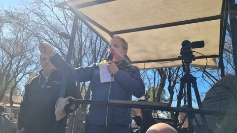 La tradicional casa azuleña celebró sus 46 anos de trabajo con un encierre de 4000 cabezas que pasaron por el martillo de Juan Wallace. El programa, que convocó gran cantidad de público además de compradores y remitentes, incluyó una disertación a cargo del Lic. Ignacio Iriarte y la actuación dek grupo Los Chamameceros.