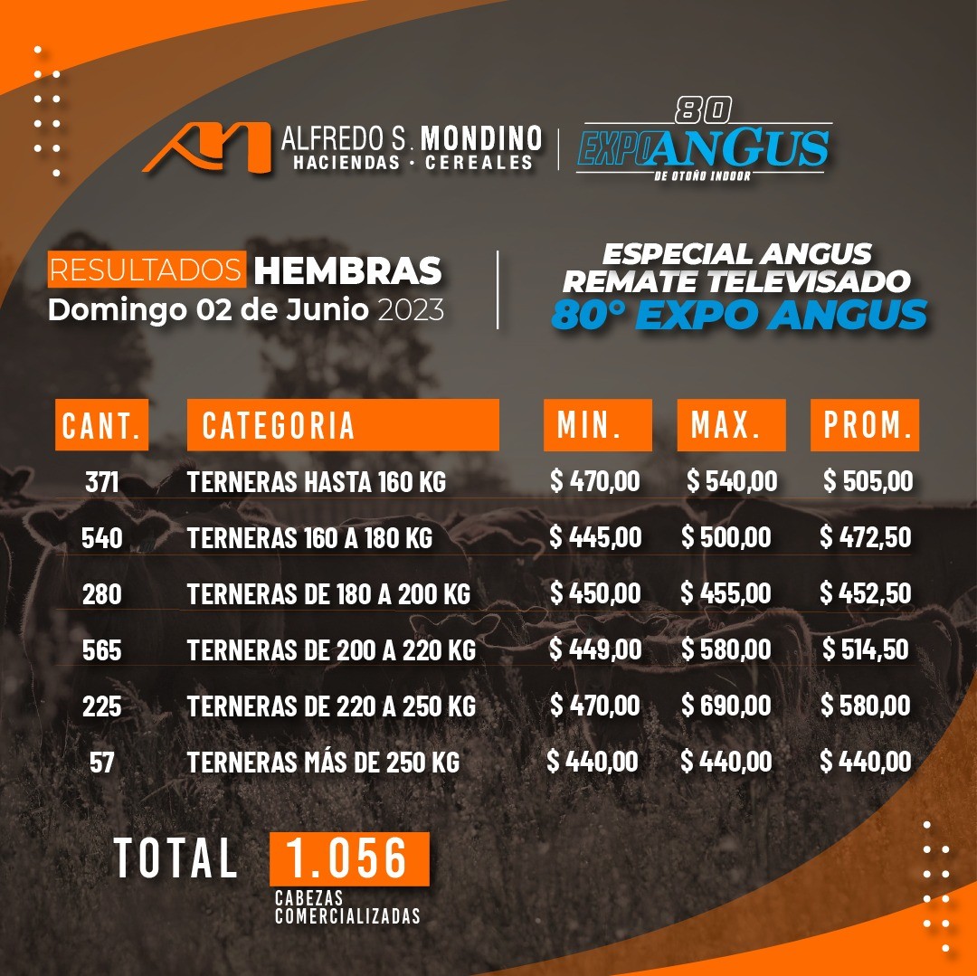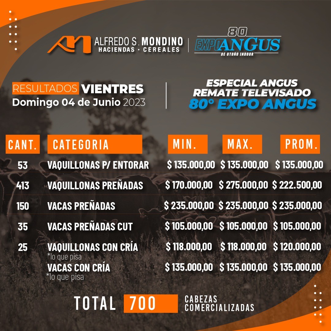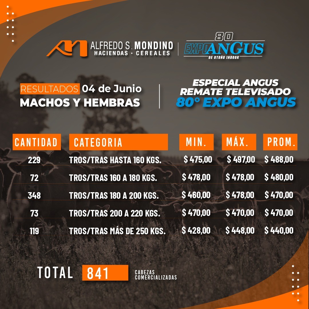 La consignataria cordobesa fue protagonista este domingo en la 80° Expo Angus de Otoño comercializó 10,000 cabezas en el Segundo Concurso Televisado de Hacienda para Faena y el Remate de Invernada y Cría de Angus y sus cruzas. Galería de fotos y resultados