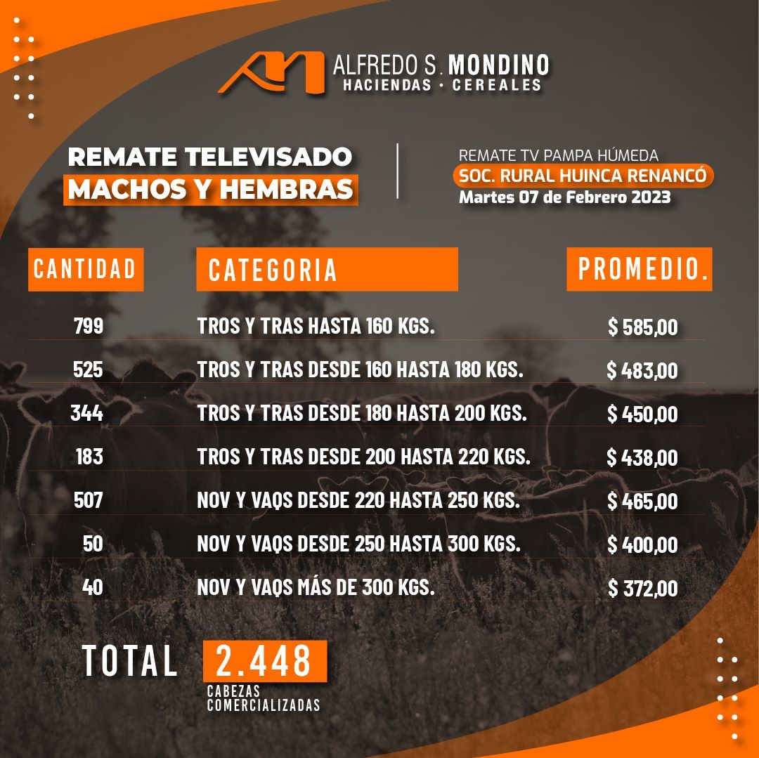 Martilleros: Roberto Mondino – Ernesto Colombo – Julián Bicondoa