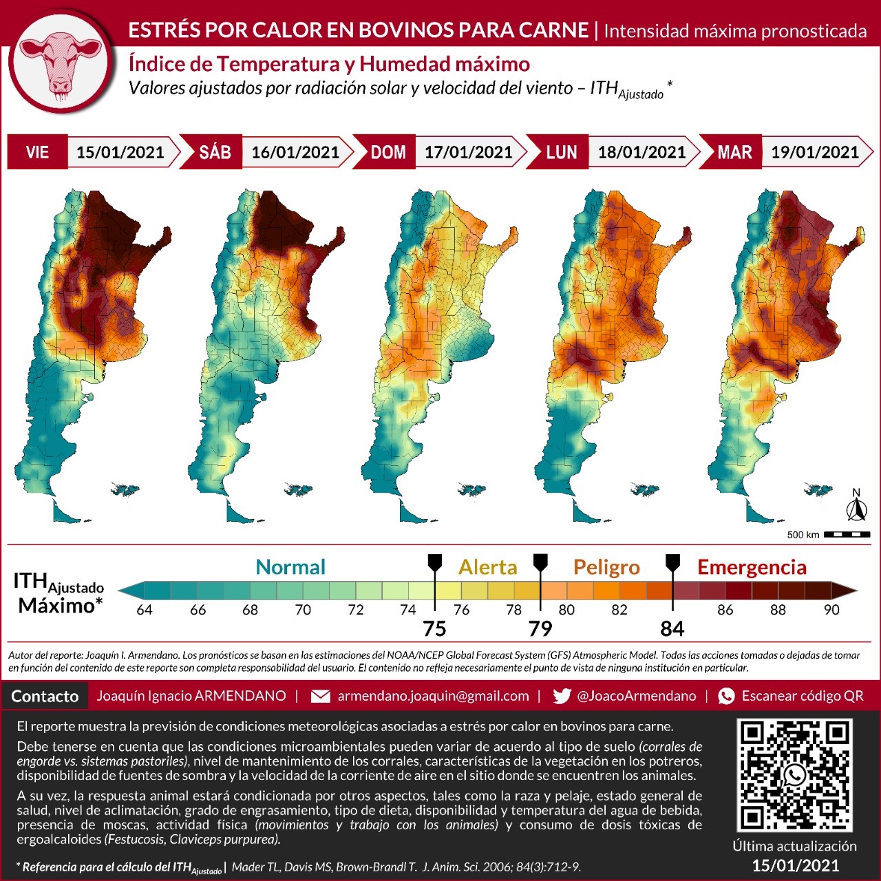 El ìndice elaborado por el Vet. Joaquin Armendano muestra la previsión de condiciones meteorológicas asociadas a estrés por calor