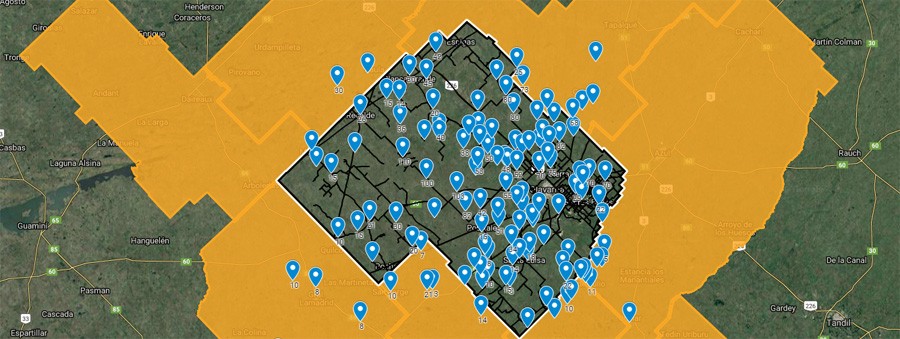 Con la colaboración de productores de la zona que aportan los datos de sus localidades o establecimientos, elaboramos un mapa interactivo con 125 puntos de registro para ver en detalle los valores de lluvias caídas y el lugar donde se tomó cada uno. Los registros máximos en nuestro partido se dieron en Paraje El Gaucho con 120 mm. pero hubo zonas donde los pluviómetros marcaron apenas 2 mm. como en El Luchador y Santa Dominga.