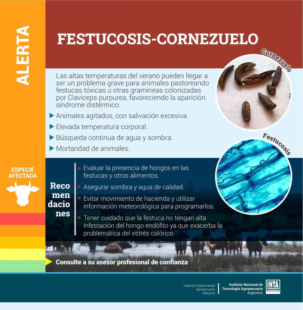 Germán Cantón, responsable del área, explicó que esta advertencia llega “tal como lo habíamos pronosticado hace un tiempo”, debido a cómo venían dándose las condiciones climáticas y a las muestras recibidas recientemente “ante la presencia de Claviceps purpurea en distintas gramíneas”. Frente a esto –señaló– se decidió emitir una alerta temprana “para que los productores, sobre todo en sistemas pastoriles, tomen recaudos antes de utilizar recursos forrajeros que puedan estar contaminados”.