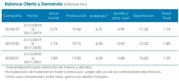 A continuación, el balance de oferta y demanda de trigo oficial: