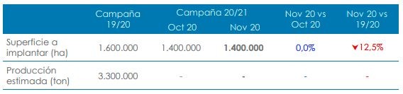 Esta producción de 4,2 millones de toneladas superaría en un 10,5% a la del ciclo 2019/20, cuando se cosecharon 3,8 millones de toneladas.