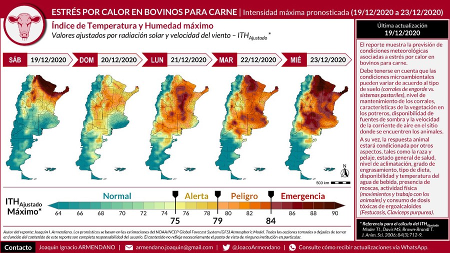 El informe elaborado por el Vet. Joaquin Armendano indica un importante aumento de la probabilidad de estrés moderado para este martes y miércoles en la región