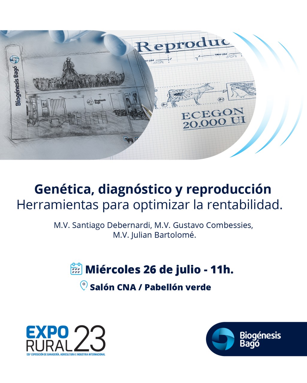 El 27 de julio de 11 a 13 hs en el salón CNA la compañía brindará una charla clave para productores ganaderos: «Genética, diagnóstico y reproducción: herramientas para optimizar la rentabilidad». Referentes de la industria como los médicos veterinarios Santiago Debernardi, Julián Bartolomé y Gustavo Combessies, dialogarán sobre diagnóstico, genética y las soluciones disponibles para eficientizarlos índices productivos. Durante la misma se realizará el lanzamiento de una nueva presentación dentro de la línea reproductiva, que representará un significativo avance en materia de practicidad y eficiencia para el trabajo con los animales.