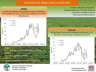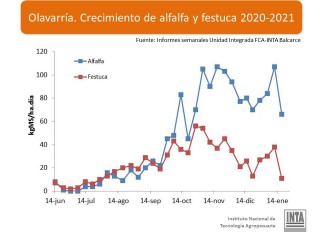 «Los gráficos son orientativos y están hechos con la información que estamos generando desde la Unidad Integrada de Facultad de Ciencias Agrarias e INTA Balcarce. Lo que estamos planteando son las tendencias, porque ahora en Enero, al haber altas temperaturas y la falta de lluvias, la festuca no va a crecer y la alfalfa va a reacomodar el crecimiento con la aparición de abundantes lluvias», explicó a ZonaCampo.com.ar el ingeniero agrónomo Paulo Recavarren, uno de los responsables del proyecto.