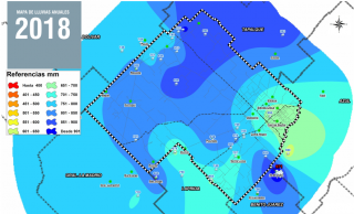 Agradecemos a la Dirección Agropecuaria perteneciente a la Secretaría de Desarrollo Económico de la Municipalidad de Olavarría ya que los mapas gráficos fueron elaborados por su equipo, en base a los datos brindados por la comunidad de usuarios de los grupos. Se pueden observar los sectores de mayor y menor precipitación mediante colores que caracterizan zonas de comportamientos homogéneos.