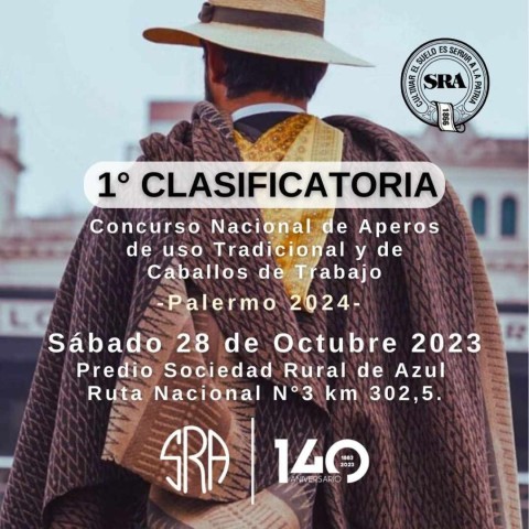 En el marco de los 140 años de La Sociedad Rural de Azul, se desarrollará el Concurso Nacional de Aperos de uso tradicional, Centros Tradicionalistas y Caballos de Trabajo, la primer clasificatoria para la próxima exposición de Palermo 2024.