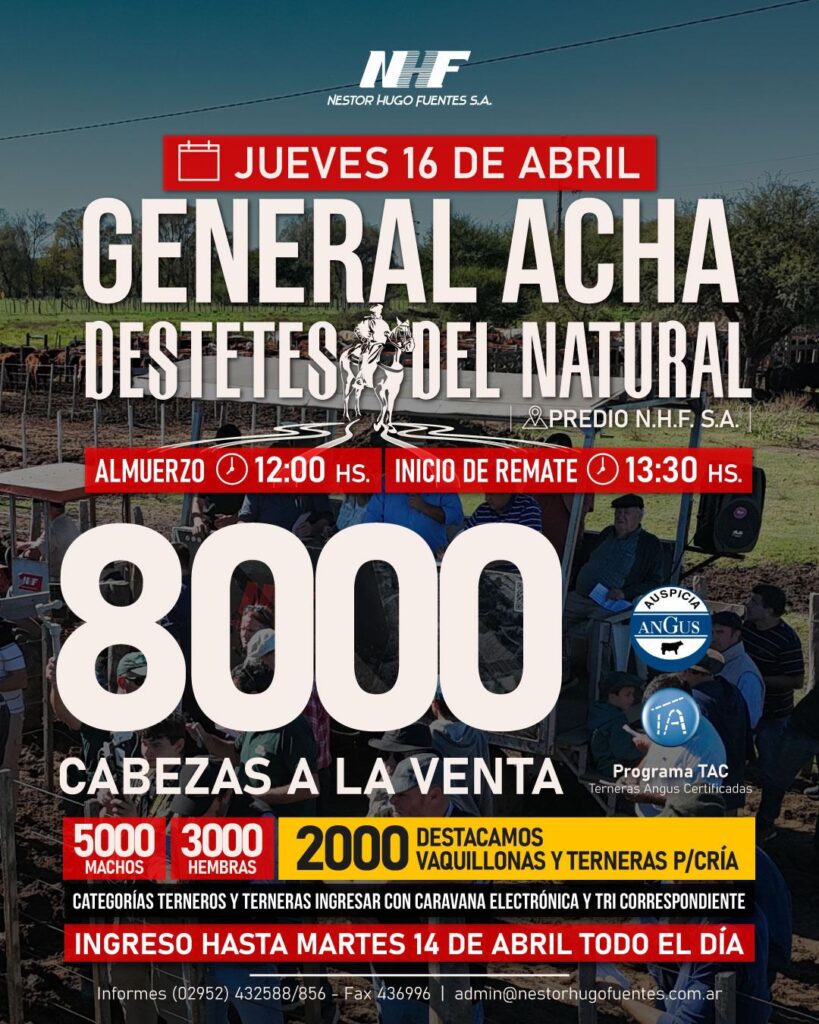 Algunos eventos no necesitan presentación, y Destetes del Natural de Néstor Hugo Fuentes S.A es uno de ellos. El próximo jueves 16 de abril tendrá lugar la 26° edición del principal remate de la ganadería de cría del Caldenal Pampeano, como siempre en el predio propio de la firma en General Acha.