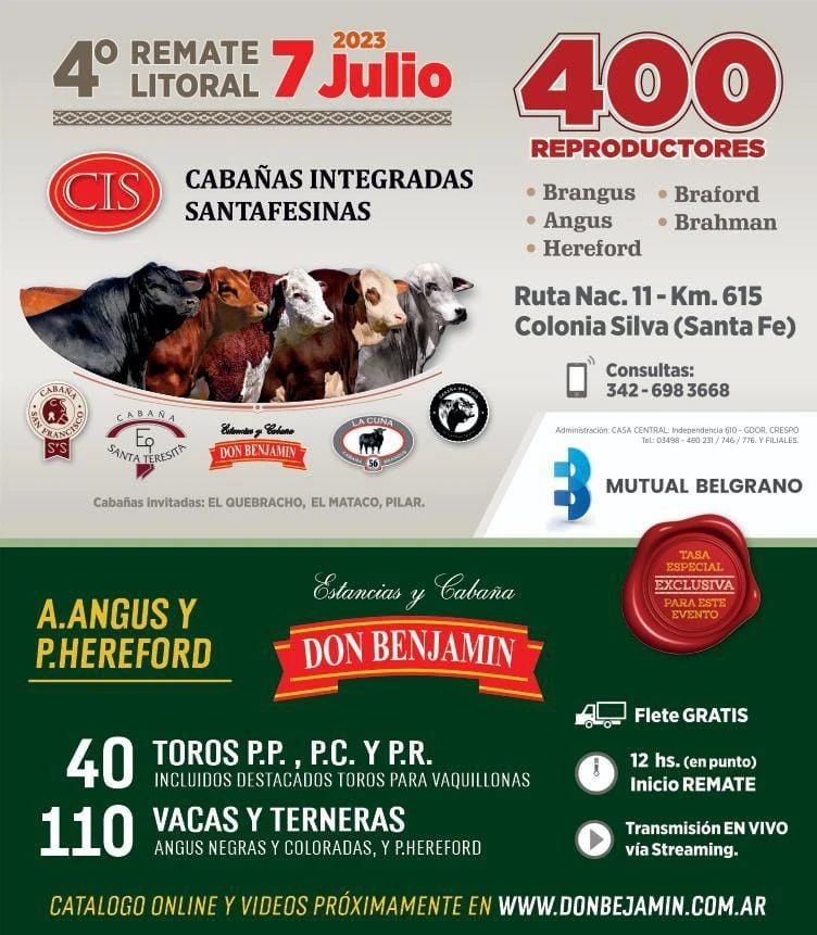 Para ver o descargar el catálogo, ingresar aquí https://www.donbenjamin-sa.com.ar/remate-litoral-2023/#catalogo