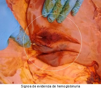 La hemoglobinuria es una enfermedad infecciosa producida por una bacteria que afecta, principalmente, bovinos y ovinos. Se caracteriza clínicamente por orina color rojiza y muerte súbita. A la necropsia se hace evidente el infarto a nivel del hígado, sitio del foco de infección de la bacteria.