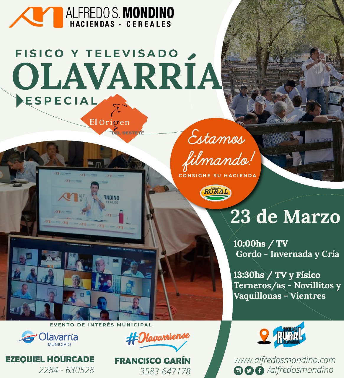 Mañana desde las 13.30 horas tendrá lugar este gran remate Televisado po Canal Rural desde Olavarría, con 13.000 cabezas a la venta incluidos 2700 por pista. Extraordinarios lotes de terneros, terneras y vientres
