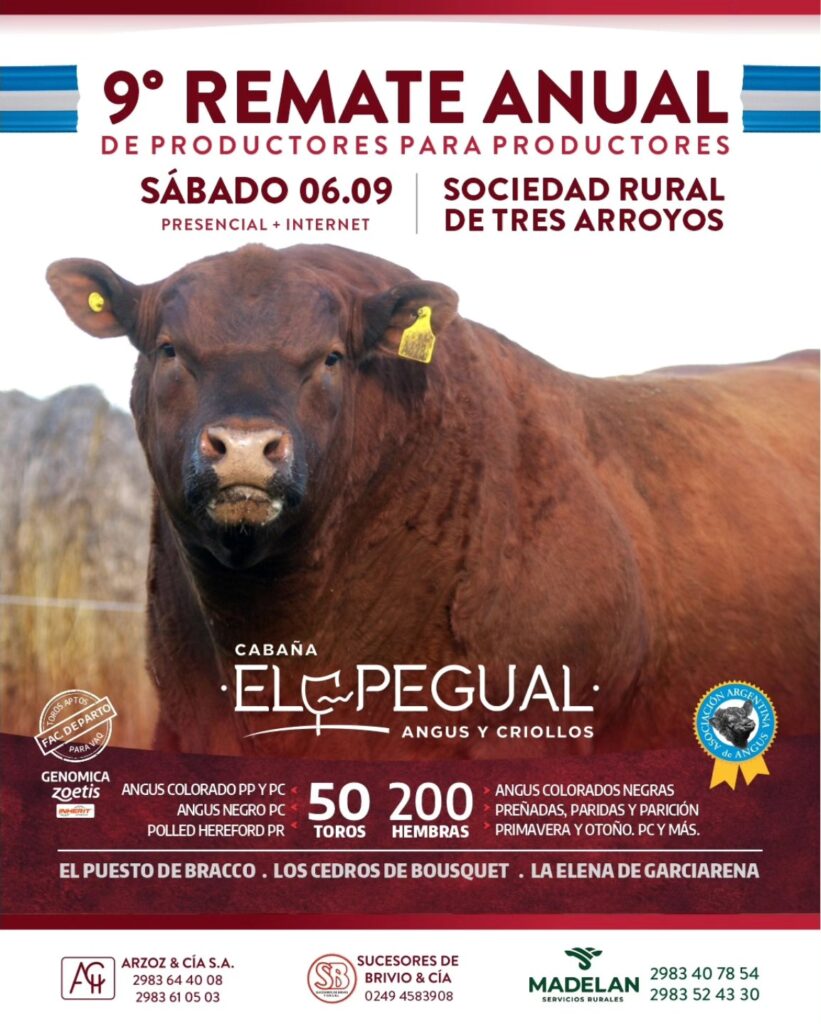 El sábado 6 de septiembre, en la Sociedad Rural de Tres Arroyos, Cabaña El Pegual llevará adelante su tradicional Remate Anual, con una oferta de 50 toros y 200 hembras. La jornada será presencial y con transmisión por internet, reafirmando la vocación de una familia que hizo de la pasión por la ganadería un proyecto de vida.