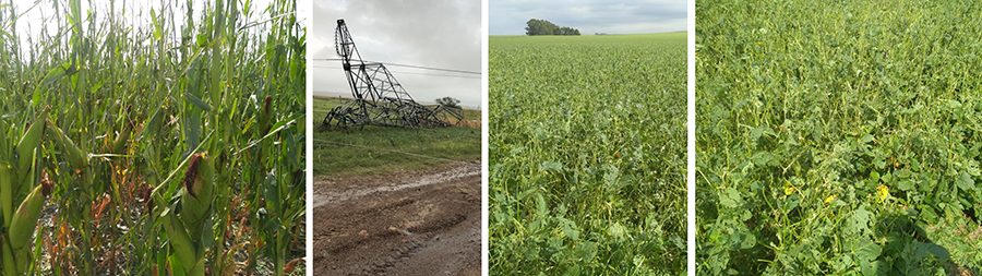 El fuerte viento y la caída de granizo provocó graves daños en los cultivos de la zona, además de una importe caída de postes y árboles.