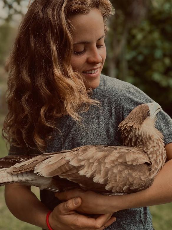 “Con mi primer amigo chimango llamado Puchito, al que rescaté de recién nacido y lo cuidé durante meses, comencé a observarlos con mayor atención y hoy día adoro subirme a la punta de un árbol en el último rayo de sol de la tarde para ser parte de una de sus costumbres, volar casi sin aletear entre prácticas aéreas y graznidos, los cuales aprendí a imitar y suelo recibir respuestas que no podría traducir a palabras humanas, pero siento ser parte de ese Instante y de su ritual”, asegura.