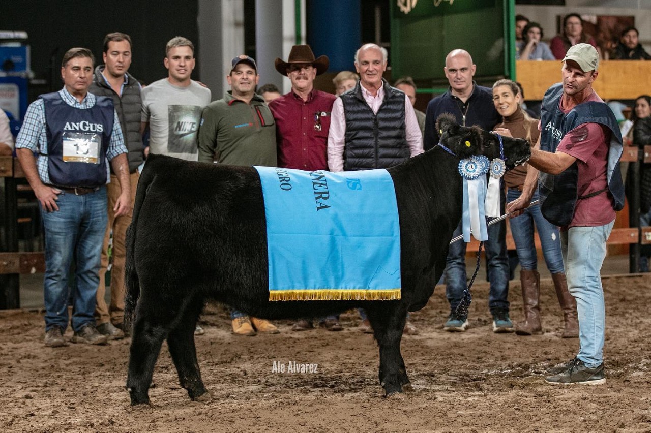 Cuando el sábado llegamos al predio de la Sociedad Rural Argentina en Palermo para cubrir la 80° Expo Angus de Otoño lo primero que nos enteramos fue el gran recorrido que venía teniendo una ternera negra de la Cabaña que encabeza Alejandro Spinella. Por supuesto que nos acodamos en la baranda de la impactante pista bajo techo de la muestra para ver a «República» que continuo su camino triunfal hasta que Javier Ezcurra, jurado de la muestra, la coronó como mejor ternera negra menor de la muestra. Las buenas noticias continuaron durante la jornada para Don Romeo, ya que un rato después «Eficacia» se quedaba con el tercer lugar entre las terneras coloradas.