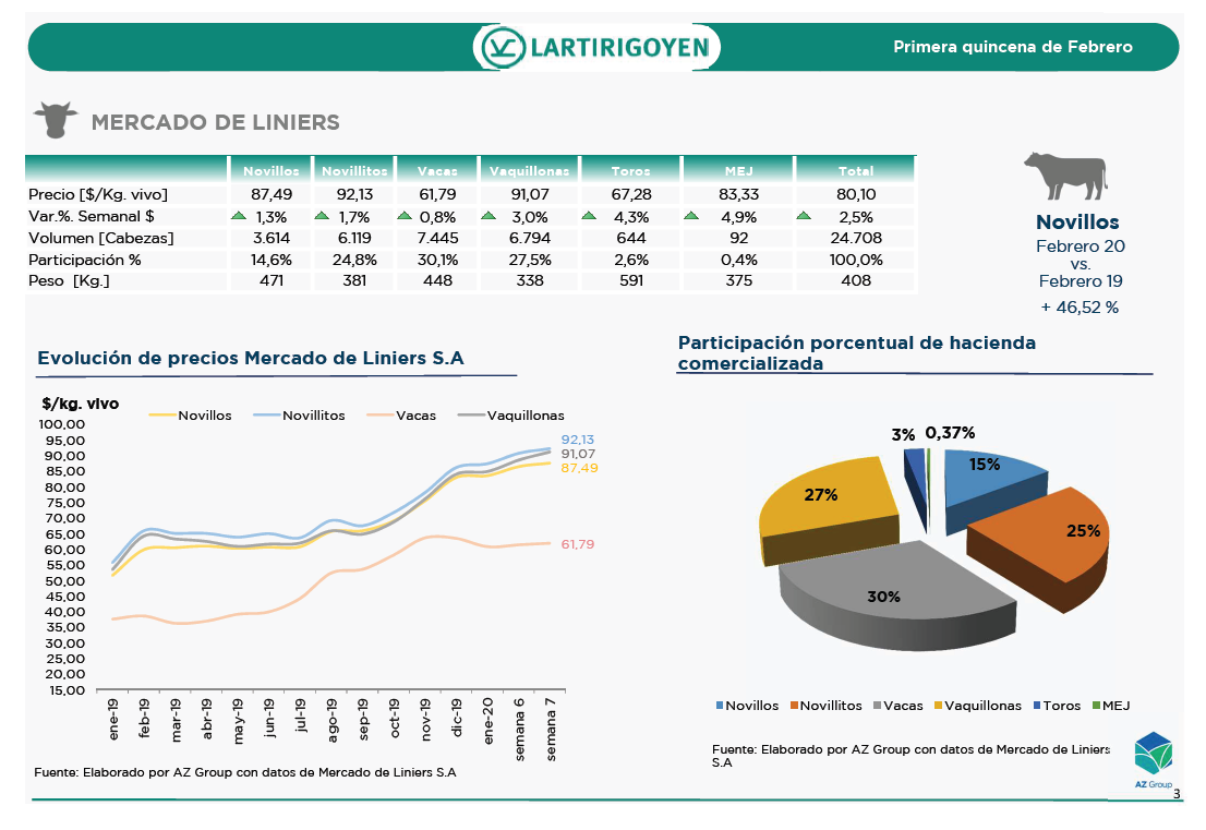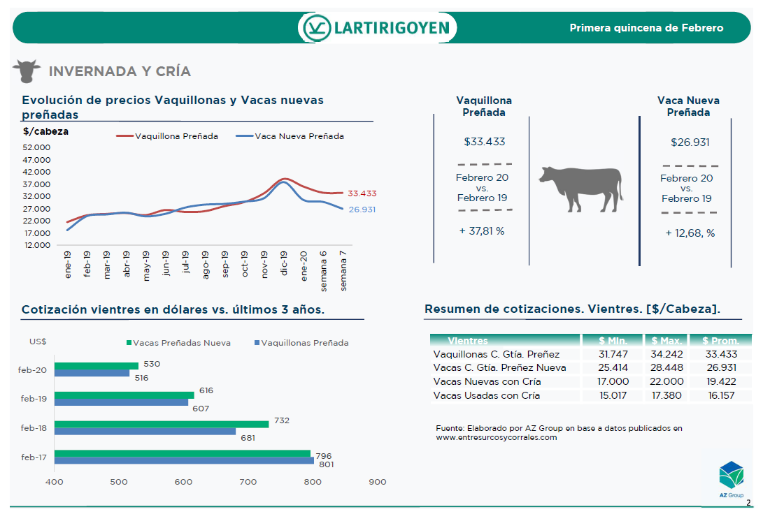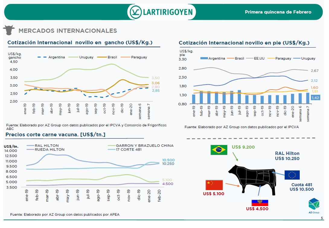 El informe Lartirigoyen, elaborado por AZ Group, hace un exhaustivo repaso de la actualidad de los mercados ganaderos durante la primera quincena de febrero