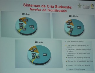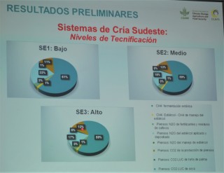 Los números finales arrojaron una huella de carbono mayor cuanto menos tecnificación se aplica en un sistema, con equivalentes en kg de carbono emitidos a la atmósfera por kg de peso vivo de 27,66; 22,02 y 19,51 para la región sudeste, y 28,09; 24,95 y 18,59 para el sudoeste, en los esquemas de Cría 1, 2 y 3 respectivamente. En la investigación también se han obtenido números preliminares respecto de invernada, pero al no ser definitivos, no fueron presentados oficialmente.