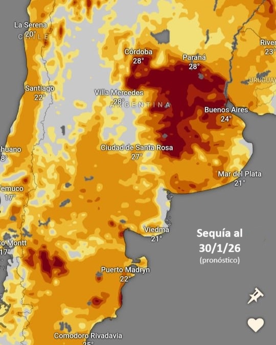 Productores y analistas del sector señalan que la falta de lluvias y el calor están afectando rendimientos, especialmente en los tramos medios y tardíos del maíz, donde se esperaba que las precipitaciones favorecieran el desarrollo de las plantas, con un alto impacto no solo para el negocio agrícola sino también por el rol que dicho grano tiene en la alimentación animal. Las elevadas temperaturas cercanas a los 40 °C han potenciado la evapotranspiración, tensionando aún más la disponibilidad de agua en suelos ya comprometidos.