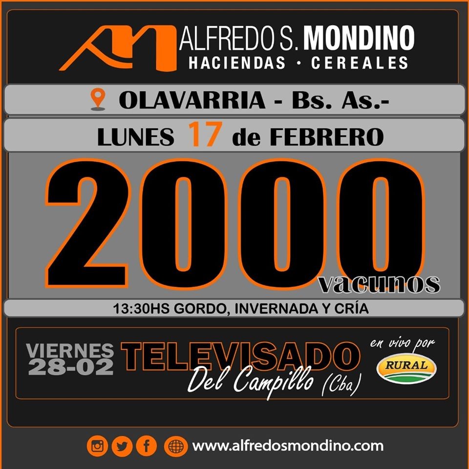 Con Ezequiel Hourcade, su Representante en Olavarría, subastará este lunes 17 de febrero desde las 13.30 horas haciendas de gordo, invernada y cría en la Sociedad Rural de Olavarría