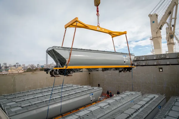 Se descargaron en la Dársena E del Puerto de Buenos Aires los primeros 90 vagones tolva graneros –fabricados por CMEC en China– destinados a la línea Belgrano Cargas. Este lote representa la mitad del pedido total de 180 unidades y fue financiado mediante un acuerdo pionero con empresas del agro que adelantaron el pago de fletes.
