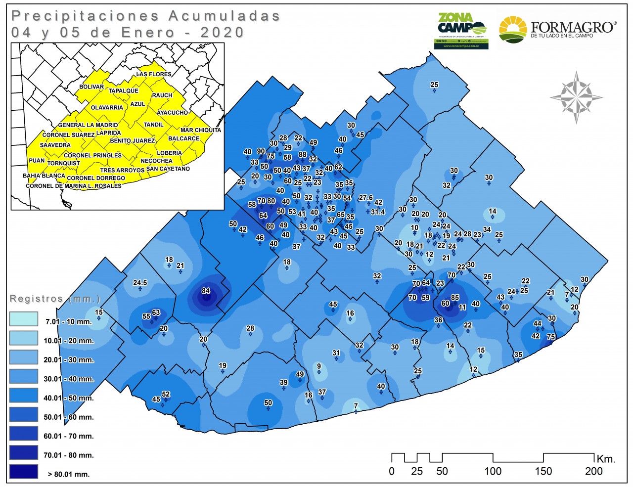 Al igual que en Olavarría se registraron nuevas precipitaciones en la región y ZonaCampo, junto a Formagro S.R.L., elaboró un mapa con 275 puntos y abarcando 23 partidos