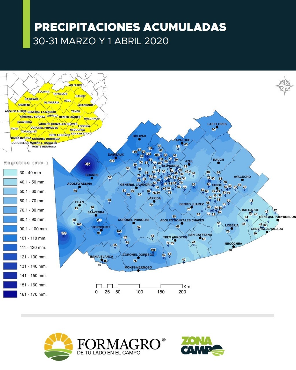 Olavarría, Bolívar, Guaminí y Púan fueron los partidos más beneficiados por las precipitaciones de esta semana. Mirá el mapa elaborado por Formagro S.R.L. junto ZonaCampo