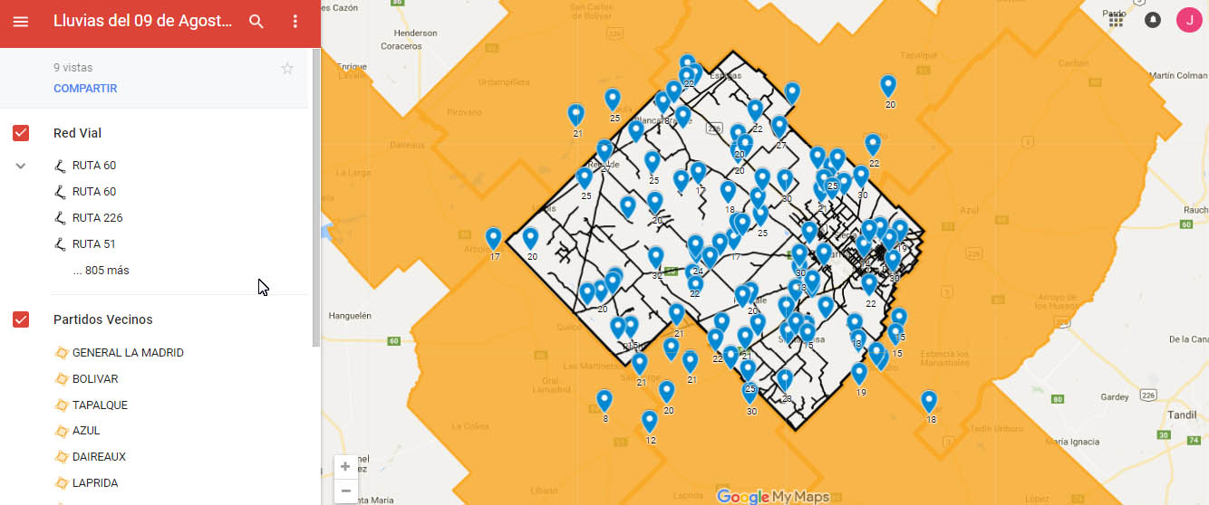 Se volvieron a registrar lluvias en el Partido de Olavarría y ZONA CAMPO elaboro un mapa interactivo con más de 100 puntos de registro