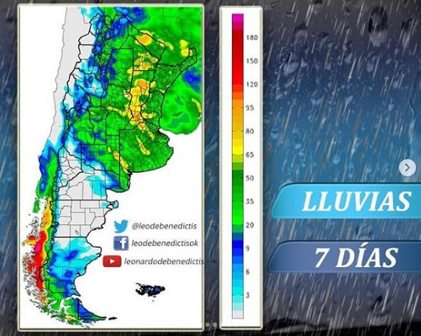Hoy nuevamente desde muy temprano los grupos de la comunidad ZonaCampo volvieron a mostrar buenos registros de lluvias caídas en campos de Olavarría y partidos vecinos. Mucho menos abundantes que las del domingo pasado pero con registros interesante que en elgunos casos superaron largamente los 20 mm.. Y como dicen que las buenas noticias llaman a otras, el reconocido meteorólogo y habitual colaborador de ZonaCampo,  Leo De Benedictis, compartió en uno de nuestros grupos sus mapas con las tendencias de las precipitaciones con la buena noticia de la alta probabilidad de nuevas precipitaciones para el domingo 26 con cifras que podrían llegar hasta los 60 mm.