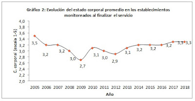 «En la primavera 2017 se registraron buenos niveles de precipitaciones y crecimiento del forraje, permitiendo que los vientres ingresen con buena condición corporal al servicio». Sin embargo los técnicos observan que «si bien una amplia área de la cuenca del salado sufrió periodos de sequía durante el verano, esto no fue tan evidente en la condición corporal de los rodeos al finalizar el servicio, que hacen prever una merma de los índices de preñez correspondientes al servicio 2017/18».