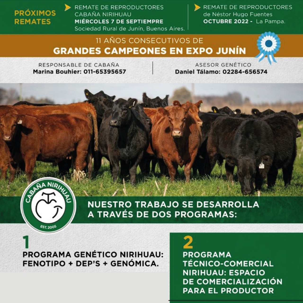 Nirihuau viene con un 2022 a pleno, con un paso destacado en la expo Angus Centenario en la que su ternero «Lolo» RP 885 recibió el premio Campeón Ternero Mayor y resultó luego ser Tercer mejor Ternero de la Expo. La cabaña también lleva ya 11 años consecutivos de Grandes Campeones en la Expo de Junín.