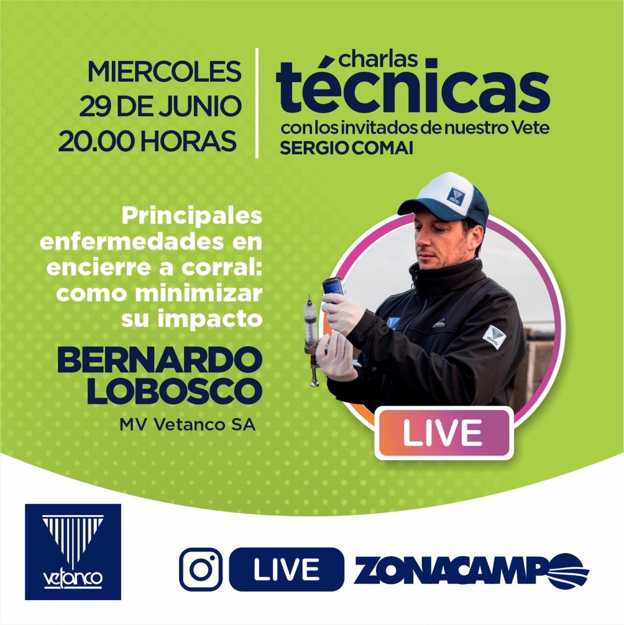No te pierdas el vivo completo de la charla de nuestro Vete Sergio Comai con el MV Bernardo Lobosco de Laboratorio Vetanco
