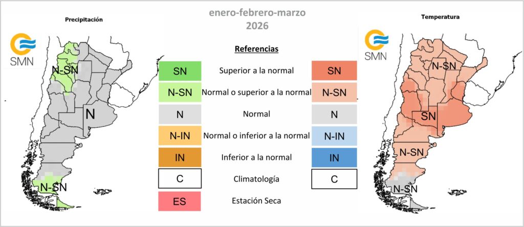 El Servicio Meteorológico Nacional (SMN) dio a conocer su Pronóstico Climático Trimestral para el período enero–febrero–marzo de 2026, elaborado el 30 de diciembre de 2025. El informe anticipa un escenario dominado por condiciones cercanas a lo normal, tanto en precipitaciones como en temperaturas, aunque con algunas regiones donde podrían registrarse valores superiores al promedio.