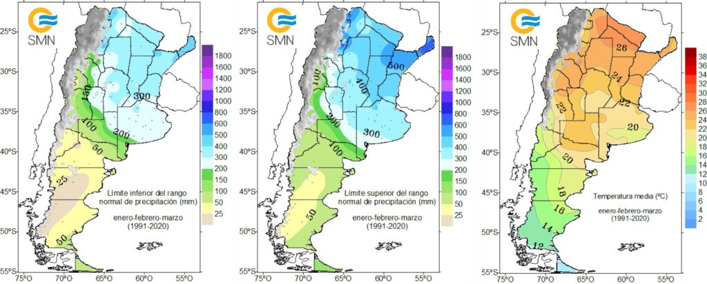 El Servicio Meteorológico Nacional prevé un trimestre con lluvias mayormente dentro de los valores normales y temperaturas con tendencia a ser normales o superiores a lo habitual en gran parte del país.