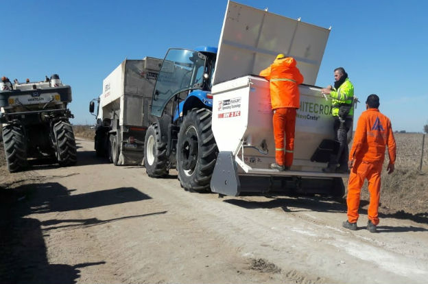 Por primera vez se está testeando en nuestro país una nueva tecnología para aplicar en el mantenimiento de los caminos rurales. Se trata de la aplicación de suelo cemento con Tecnología HITEC Holanda para lograr superficies de rodamiento con una duración superior a 15 años y transitables todo el año.