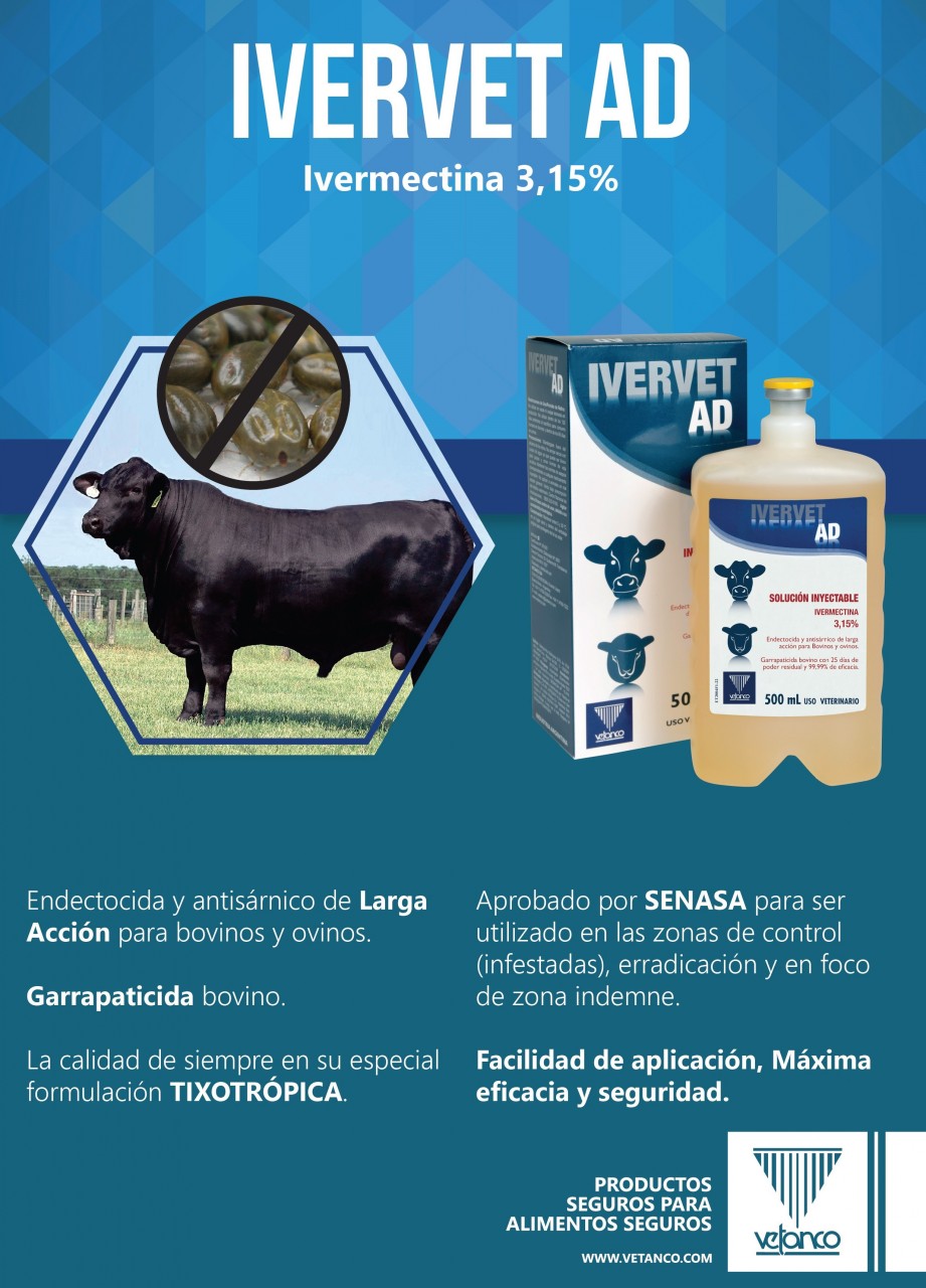 Ivermectina en presentaciones 1% (Ivervet) y 3,15% (Ivervet AD) de larga acción como lactonas macrocíclicas inyectables. También cuenta con Amitraz 12,5% (Triatix A), una alternativa diferente que permite rotar no solo el principio activo, sino también el sitio de aplicación, siendo este por aspersión. En dilución: 1 lt de Triatix en 300 lts. de agua.