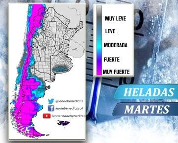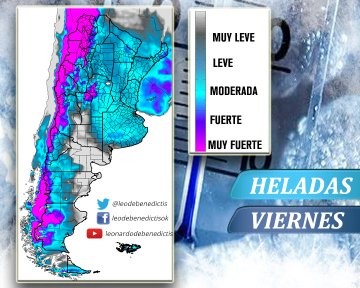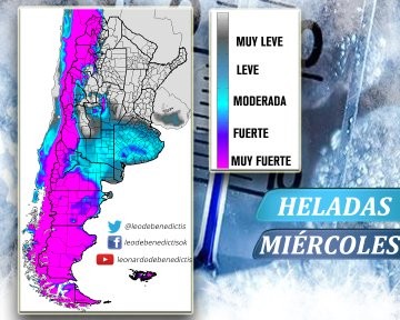 No se descarta que mañana ya comiencen a observarse temperaturas en torno de cero grado sobre la franja centra del país. Hacia el viernes se esperan mínimas inferiores a los cinco grados sobre el norte de la Mesopotamia. No se esperan precipitaciones significativas en los próximos días.