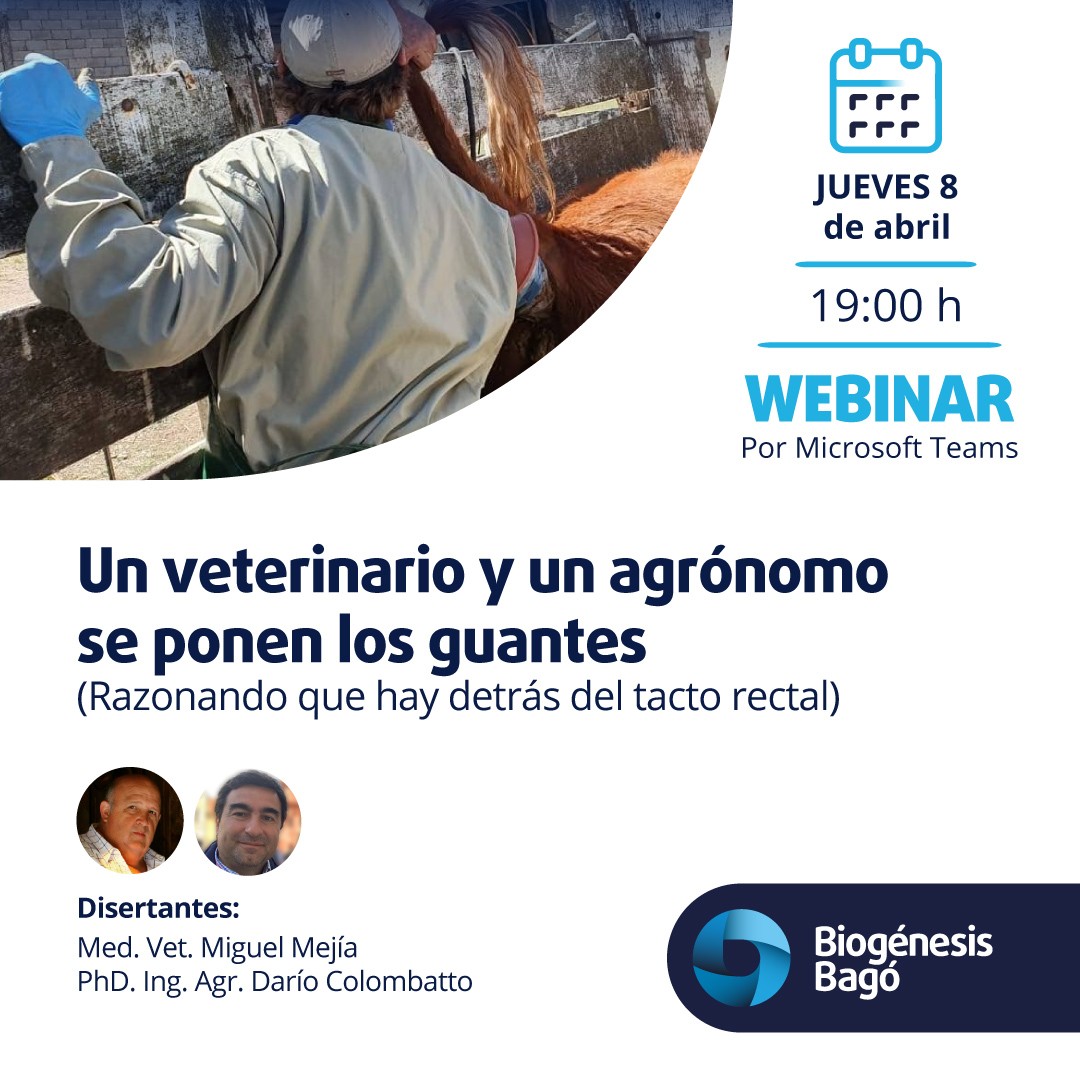 Biogénesis Bagó te invita al webinar «Un veterinario y un agrónomo se ponen los guantes» (Razonando que hay detrás del tacto rectal)