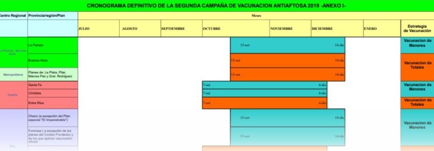 El Servicio Nacional de Sanidad Agroalimentaria (SENASA) estableció el cronograma para la segunda campaña de vacunación antiaftosa del corriente año, que tendrá lugar con diferentes alcances estratégicos en las regiones de La Pampa, Buenos Aires, Metropolitana, Centro, Cuyo, NEA y NOA.