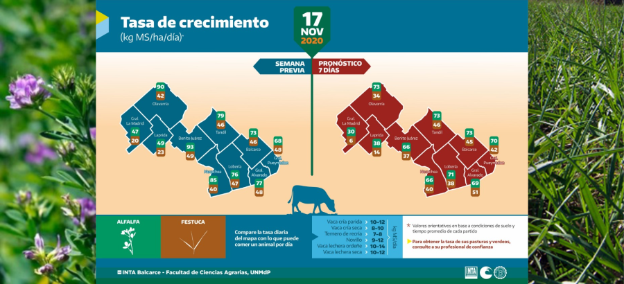 INTA Balcarce y la UNMdP presentaron una nuevas infografía sobre la tasa de crecimiento de dos especies forrajeras en 10 partidos, en base a modelos informáticos. Semana del 17 de noviembre.