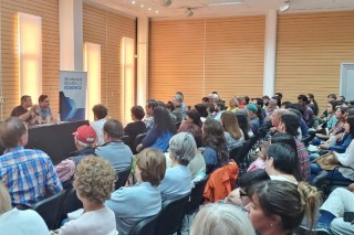 La charla fue organizada en conjunto por esta institución, de la cual Cerdá –recientemente nombrado director de Agroecología en el Ministerio de Agricultura y Ganadería de la Nación- es presidente, y la Secretaría de Desarrollo Económico de la Municipalidad al frente de Julio Valetutto, y contó con gran cantidad de público de diferentes vertientes ideológicas y políticas, pero todos interesados en la temática.