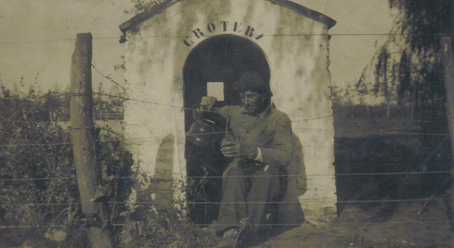 Era costumbre de la casa darles la comida hecha a todos los crotos que llegaban, y no eran pocos. En una fuente enlozada iba el puchero de oveja. Carne, Papa, zapallo de la casa, bastante caldo y en el fondo, arroz para la sopa y tres galletas. Media de vino bautizada con agua para evitar problemas. Y allá salíamos con mis hermanos a llevarle este manjar a Don «Linye».