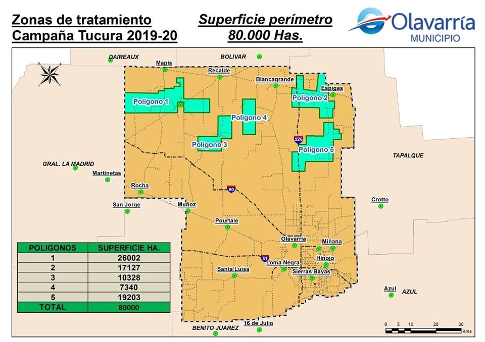En el marco de la Campaña 2019-2020 se determinaron los polígonos a pulverizar contra tucura en el Partido de Olavarría estimandose que los trabajos comenzarán a fines de la próxima semana.