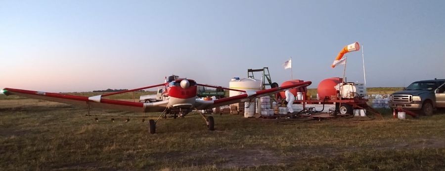 En esa campaña se operó desde 3 pistas diferentes y los trabajos fueron realizados por la empresa Aviación Agrícola Argentina de la localidad de Benito Juárez